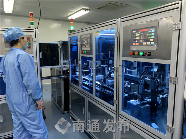 10月30日,南通伊仕生物技術(shù)股份有限公司生產(chǎn)車間內(nèi),一臺(tái)臺(tái)自主研發(fā)的全自動(dòng)化設(shè)備馬力全開,零星的幾個(gè)工作人員身穿潔凈防護(hù)服,只需動(dòng)動(dòng)手指操作控制面板。分切、組裝、入袋包裝、批號(hào)打碼……一個(gè)個(gè)小小的試劑板從這里誕生,被運(yùn)往世界各地,日產(chǎn)量約170萬(wàn)人份。